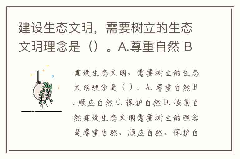 建设生态文明,需要树立的生态文明理念是()。A.尊重自然 B.顺应自然 C.保护自然 D.恢复自然