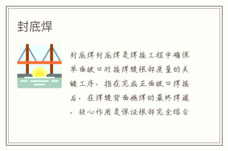 封底焊是焊接工程中确保单面坡口对接焊缝根部质量的关键工序,指在完成正面坡口焊接后,在焊缝背面施焊的最终焊道,核心作用是保证根部完全熔合并形成致密的密封结构。这一工艺广泛应用于管道、压力容器、球罐等对密封性和强度要求极高的场景,例如600MW火电机组的进抽汽管道焊接、西气东输长输管道工程,以及航空航天领域的精密构件连接。