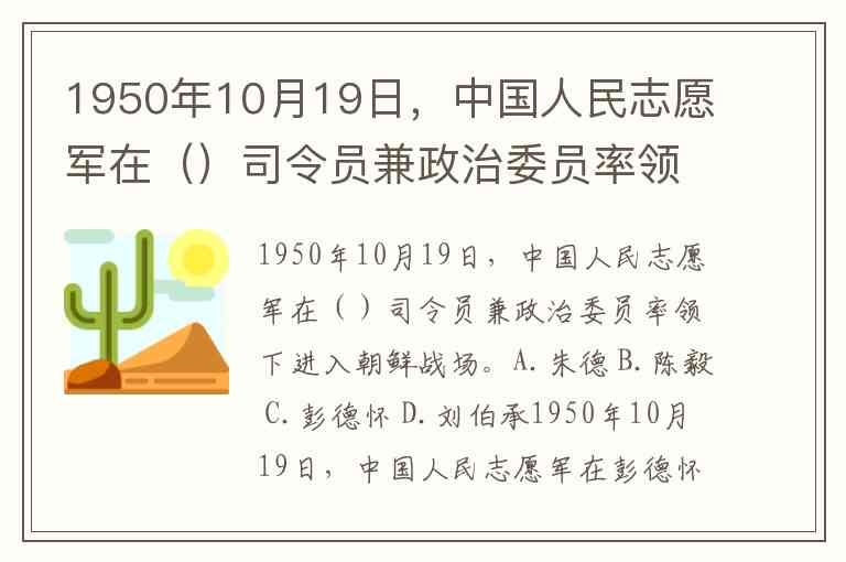 1950年10月19日,中国人民志愿军在()司令员兼政治委员率领下进入朝鲜战场。A.朱德 B.陈毅 C.彭德怀 D.刘伯承