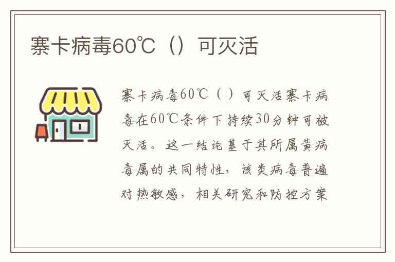 寨卡病毒在60℃条件下持续30分钟可被灭活。这一结论基于其所属黄病毒属的共同特性,该类病毒普遍对热敏感,相关研究和防控方案均明确支持这一灭活参数。例如,中国疾病预防控制中心发布的《寨卡病毒病防控方案》指出,黄病毒属病毒“60℃30分钟可灭活”,这一标准也被用于临床诊疗和公共卫生实践中。