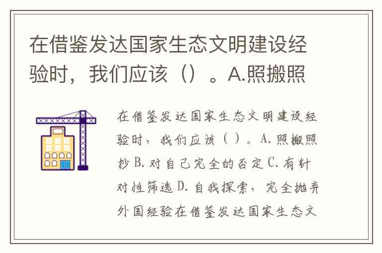 在借鉴发达国家生态文明建设经验时,我们应该()。A.照搬照抄 B.对自己完全的否定 C.有针对性筛选 D.自我探索,完全抛弃外国经验