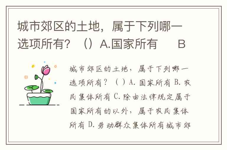 城市郊区的土地,属于下列哪一选项所有?()A.国家所有 B.农民集体所有 C.除由法律规定属于国家所有的以外,属于农民集体所有 D.劳动群众集体所有