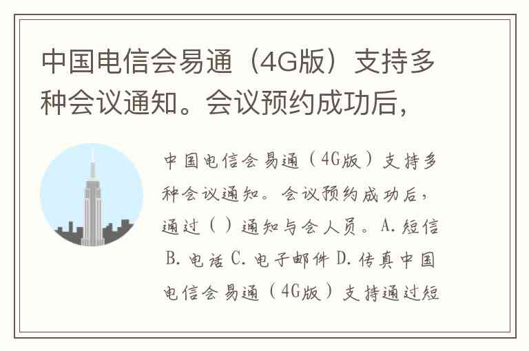 中国电信会易通(4G版)支持多种会议通知。会议预约成功后,通过()通知与会人员。A.短信 B.电话 C.电子邮件 D.传真