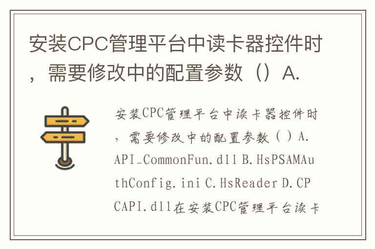 安装CPC管理平台中读卡器控件时,需要修改中的配置参数()A.API_CommonFun.dll B.HsPSAMAuthConfig.ini C.HsReader D.CPCAPI.dll