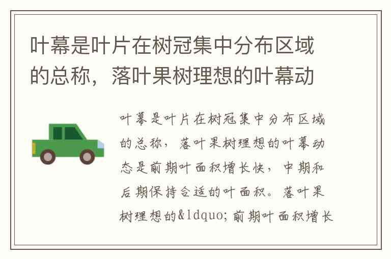叶幕是叶片在树冠集中分布区域的总称,落叶果树理想的叶幕动态是前期叶面积增长快,中期和后期保持合适的叶面积。