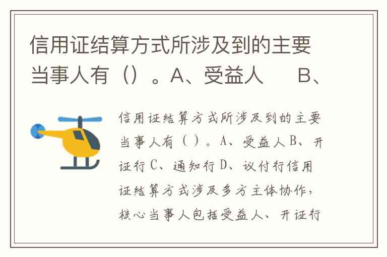 信用证结算方式涉及多方主体协作,核心当事人包括受益人、开证行、通知行和议付行。根据《国内信用证结算办法》及国际惯例(如UCP600),这些角色通过明确的权责划分构成完整的支付链条。