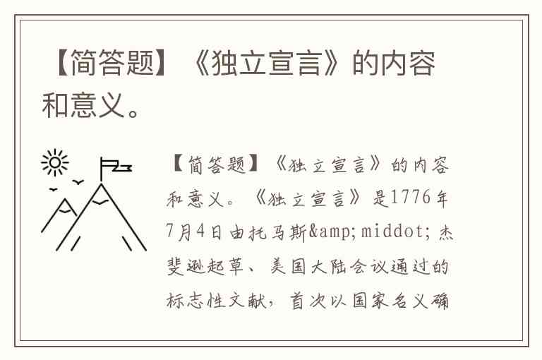 【简答题】《独立宣言》的内容和意义。