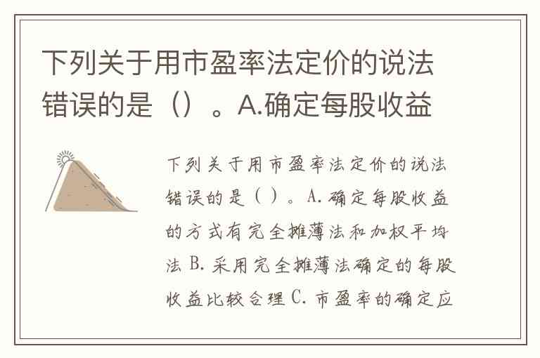 下列关于用市盈率法定价的说法错误的是()。A.确定每股收益的方式有完全摊薄法和加权平均法 B.采用完全摊薄法确定的每股收益比较合理 C.市盈率的确定应该根据市场的平均市盈率、发行公司所处的行业、发行公司的经营状况及其成长性等拟定 D.依照发行市盈率与每股收益之乘积决定发行价格