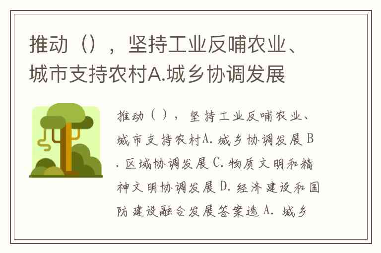 推动(),坚持工业反哺农业、城市支持农村A.城乡协调发展 B.区域协调发展 C.物质文明和精神文明协调发展 D.经济建设和国防建设融合发展
