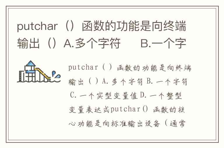 putchar()函数的功能是向终端输出()A.多个字符 B.一个字符 C.一个实型变量值 D.一个整型变量表达式