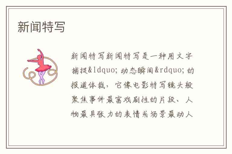 新闻特写是一种用文字捕捉“动态瞬间”的报道体裁,它像电影特写镜头般聚焦事件最富戏剧性的片段、人物最具张力的表情或场景最动人的细节,通过细腻描写让读者身临其境。与消息的概括性报道不同,特写追求“局部放大”的艺术——《解放军报》仅用300字描写部队等炊事员一起看电影的场景,就展现了官兵平等的新风尚;《人民日报》通过三个媳妇争抢赡养公婆的“舌战”,让敬老美德跃然纸上。这种“以小见大”的魔力,源于对真实细节的精准捕捉与文学化表达的平衡。