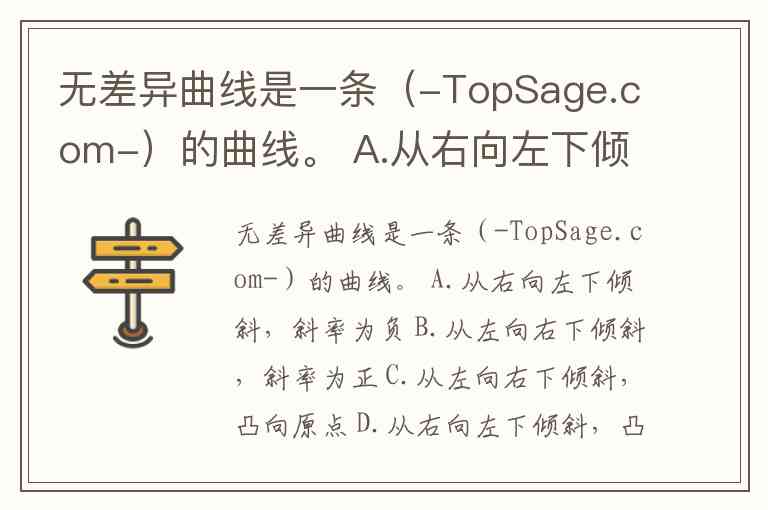无差异曲线是一条(-TopSage.com-)的曲线。 A.从右向左下倾斜,斜率为负 B.从左向右下倾斜,斜率为正 C.从左向右下倾斜,凸向原点 D.从右向左下倾斜,凸向原点A.com-)的曲线。 A.从右向左下倾斜,斜率为负 B.从左向右下倾斜,斜率为正 C.从左向右下倾斜,凸向原点 D.从右向左下倾斜,凸向原点