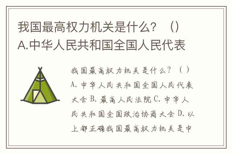 我国最高权力机关是什么?()A.中华人民共和国全国人民代表大会 B.最高人民法院 C.中华人民共和国全国政治协商大会 D.以上都正确