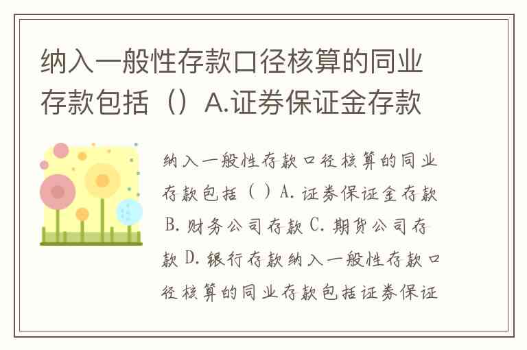 纳入一般性存款口径核算的同业存款包括()A.证券保证金存款 B.财务公司存款 C.期货公司存款 D.银行存款