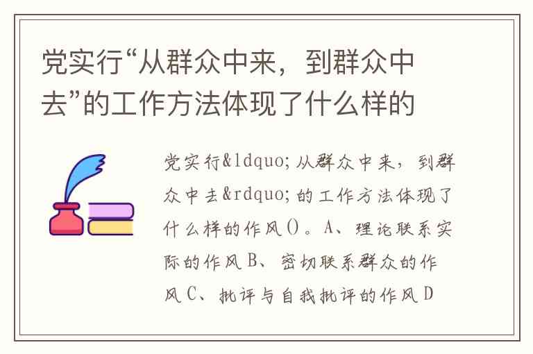 党实行“从群众中来,到群众中去”的工作方法体现了什么样的作风()。A、理论联系实际的作风 B、密切联系群众的作风 C、批评与自我批评的作风 D、实事求是的作风