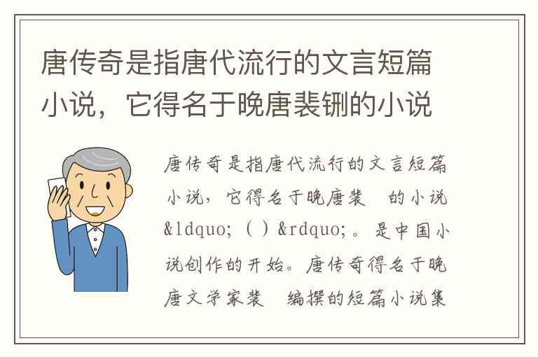 唐传奇是指唐代流行的文言短篇小说,它得名于晚唐裴铏的小说“()”。是中国小说创作的开始。