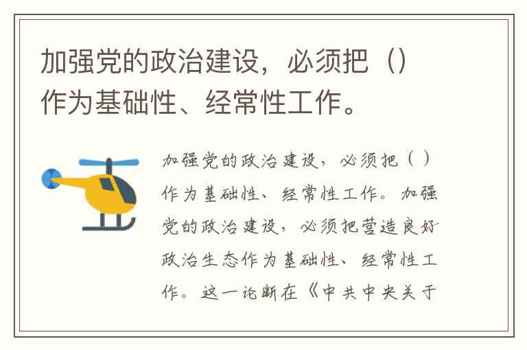 加强党的政治建设,必须把()作为基础性、经常性工作。