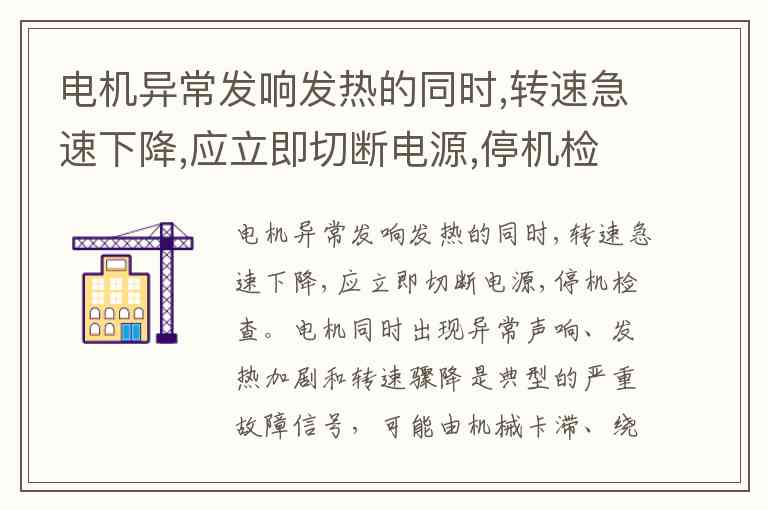 电机异常发响发热的同时,转速急速下降,应立即切断电源,停机检查。