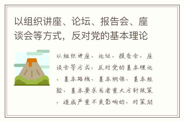 以组织讲座、论坛等方式反对党的基本理论、路线、方略或重大方针政策并造成严重不良影响的行为,属于严重违反政治纪律的情形。根据《中国共产党纪律处分条例》第六十四条明确规定,对此类行为的策划者、组织者和骨干分子,应直接给予开除党籍处分。这一规定体现了党中央维护政治纪律的坚定决心,通过明确纪律底线确保党的理论和路线方针政策不受挑战。