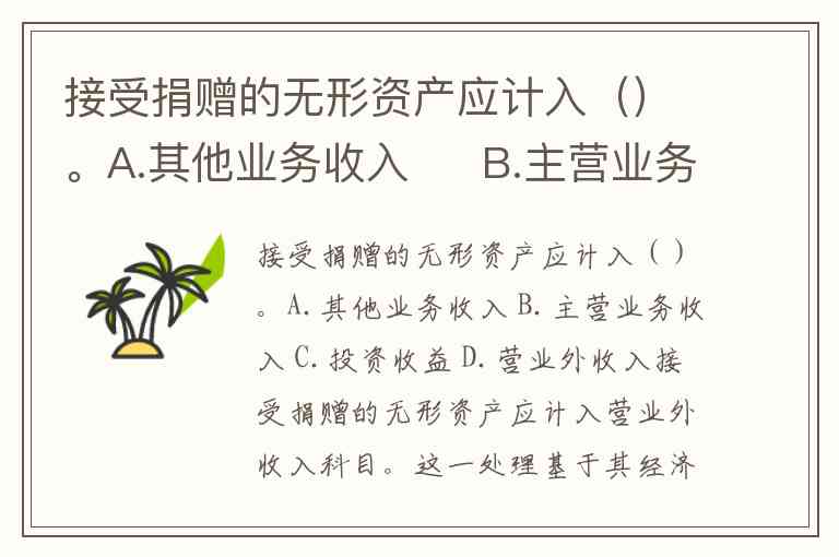 接受捐赠的无形资产应计入()。A.其他业务收入 B.主营业务收入 C.投资收益 D.营业外收入