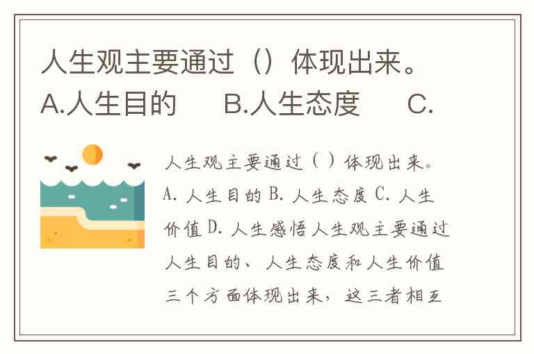 人生观主要通过()体现出来。A.人生目的 B.人生态度 C.人生价值 D.人生感悟