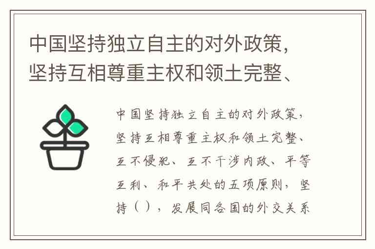 中国坚持独立自主的对外政策,坚持互相尊重主权和领土完整、互不侵犯、互不干涉内政、平等互利、和平共处的五项原则,坚持(),发展同各国的外交关系和经济、文化交流,推动构建人类命运共同体。A.和平发展道路 B.领先世界的科技 C.互利共赢开放战略 D.文化和而不同