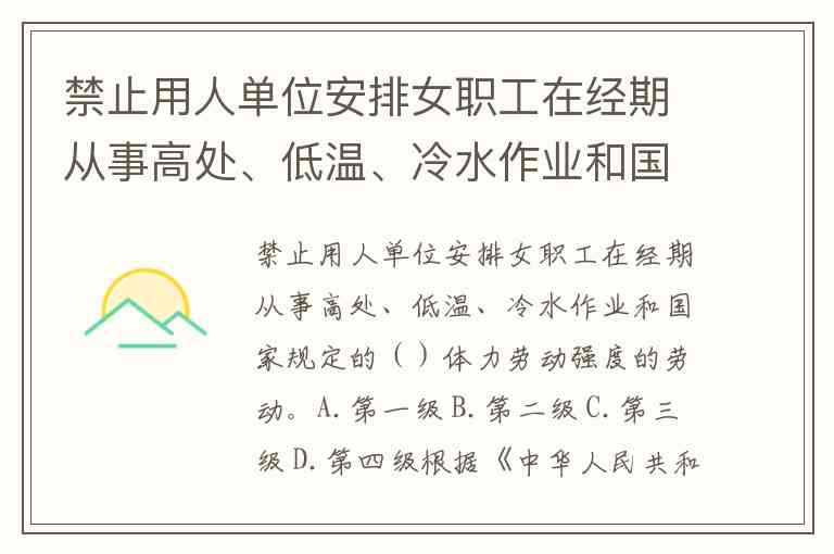 禁止用人单位安排女职工在经期从事高处、低温、冷水作业和国家规定的()体力劳动强度的劳动。A.第一级 B.第二级 C.第三级 D.第四级