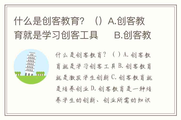 什么是创客教育?()A.创客教育就是学习创客工具 B.创客教育就是激发学生创新 C.创客教育就是培养创业 D.创客教育是一种培养学生的创新、创业所需的知识、视野、能力等方面的教育行为