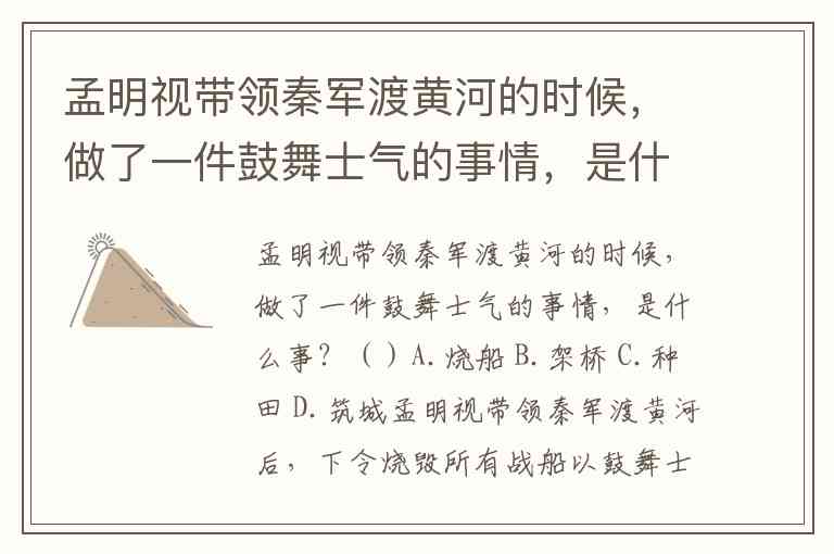 孟明视带领秦军渡黄河的时候,做了一件鼓舞士气的事情,是什么事?()A.烧船 B.架桥 C.种田 D.筑城