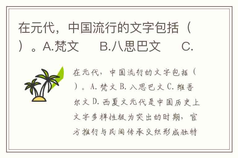 在元代,中国流行的文字包括()。A.梵文 B.八思巴文 C.维吾尔文 D.西夏文