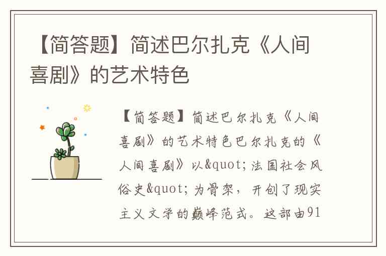 【简答题】简述巴尔扎克《人间喜剧》的艺术特色