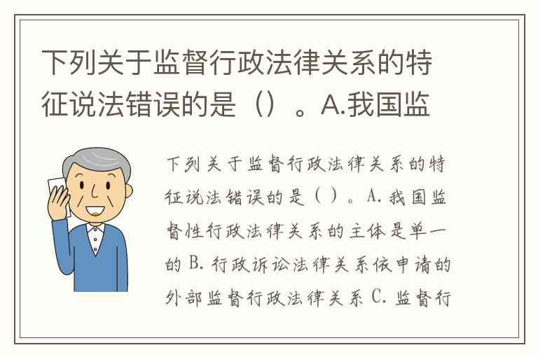 答案:A. 我国监督性行政法律关系的主体是单一的