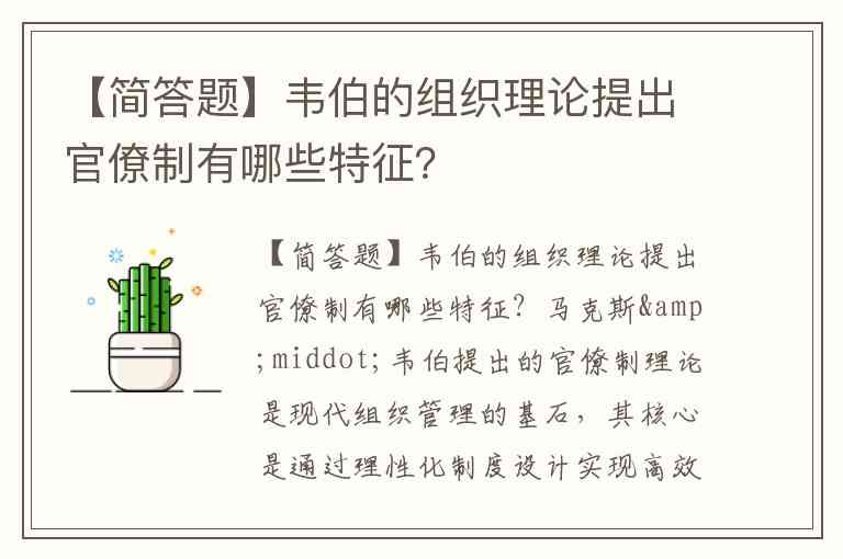 【简答题】韦伯的组织理论提出官僚制有哪些特征?