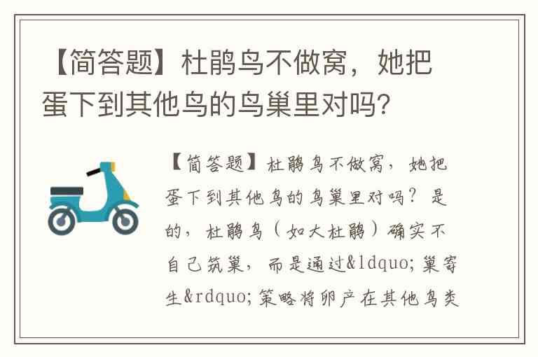 【简答题】杜鹃鸟不做窝,她把蛋下到其他鸟的鸟巢里对吗?