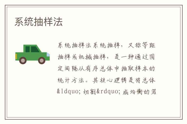 系统抽样,又称等距抽样或机械抽样,是一种通过固定间隔从有序总体中抽取样本的统计方法。其核心逻辑是将总体“切割”成均衡的若干部分,通过简单随机抽样确定起始点后,按固定间隔依次选取样本,兼具操作简便与样本分布均匀的优势。这种方法特别适用于大规模总体(如工厂产品质检、人口普查),但需警惕总体周期性规律可能导致的抽样偏差——例如按班级名册每隔10人抽样时,若恰好抽到的都是班长,则样本代表性将严重受损。