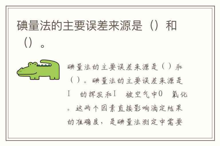 碘量法的主要误差来源是I₂的挥发和I⁻被空气中O₂氧化。这两个因素直接影响滴定结果的准确度,是碘量法测定中需要重点控制的关键问题。