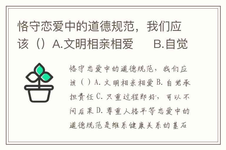 恪守恋爱中的道德规范,我们应该()A.文明相亲相爱 B.自觉承担责任 C.只重过程即好,可以不问后果 D.尊重人格平等