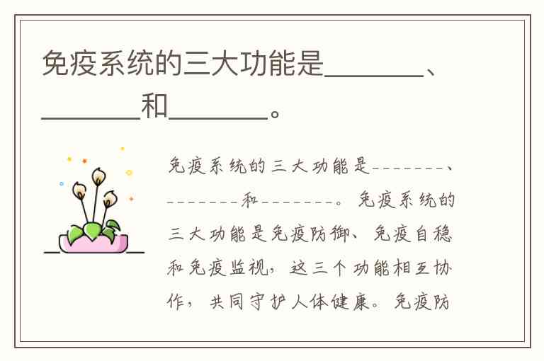 免疫系统的三大功能是免疫防御、免疫自稳和免疫监视,这三个功能相互协作,共同守护人体健康。