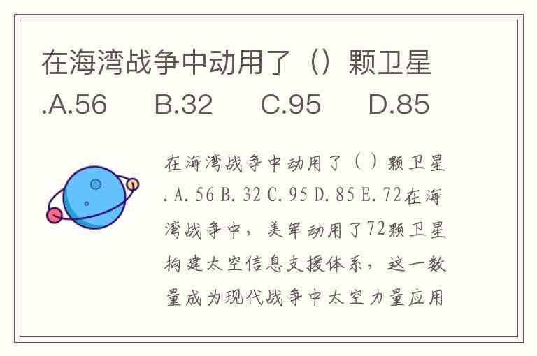 在海湾战争中动用了()颗卫星.A.56 B.32 C.95 D.85 E.72