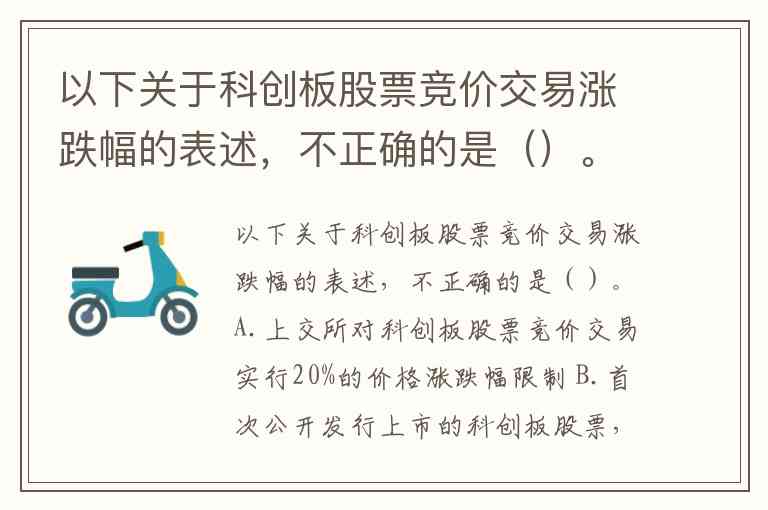以下关于科创板股票竞价交易涨跌幅的表述,不正确的是()。A.上交所对科创板股票竞价交易实行20%的价格涨跌幅限制 B.首次公开发行上市的科创板股票,上市后的前5个交易日不设价格涨跌幅限制 C.首次公开发行上市的科创板股票,仅在上市首日不设价格涨跌幅限制 D.首次公开发行上市的科创板股票,上市后第6个交易日开始,适用20%的涨跌幅限制