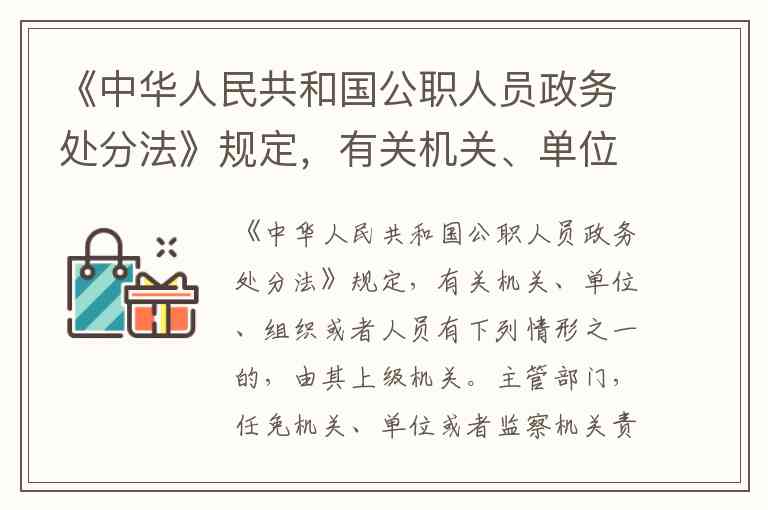 《中华人民共和国公职人员政务处分法》明确规定了有关机关、单位、组织或人员需承担法律责任的具体情形。根据该法第六章第六十二条,以下四类行为将面临上级机关、主管部门、任免机关、单位或监察机关的责令改正及依法处理: