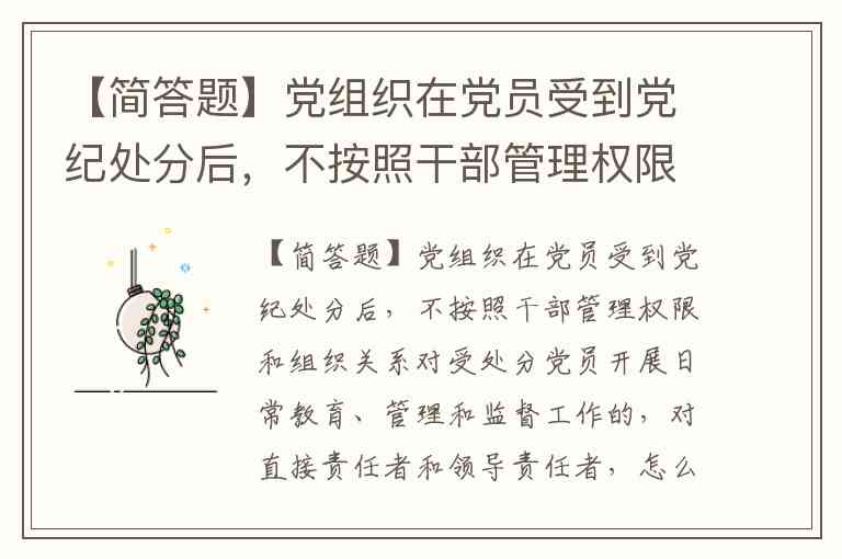 【简答题】党组织在党员受到党纪处分后,不按照干部管理权限和组织关系对受处分党员开展日常教育、管理和监督工作的,对直接责任者和领导责任者,怎么处分?
