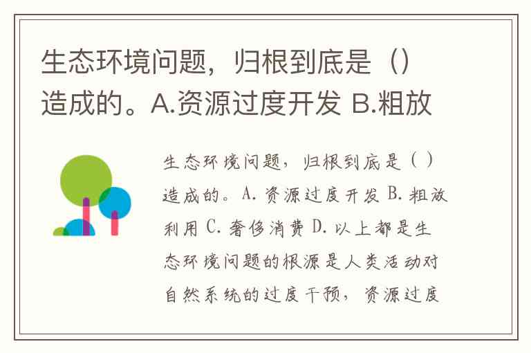 生态环境问题,归根到底是()造成的。A.资源过度开发 B.粗放利用 C.奢侈消费 D.以上都是