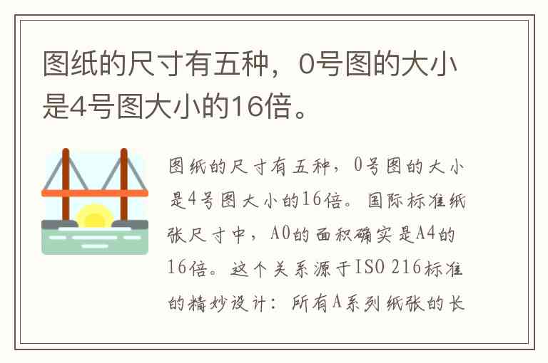 图纸的尺寸有五种,0号图的大小是4号图大小的16倍。