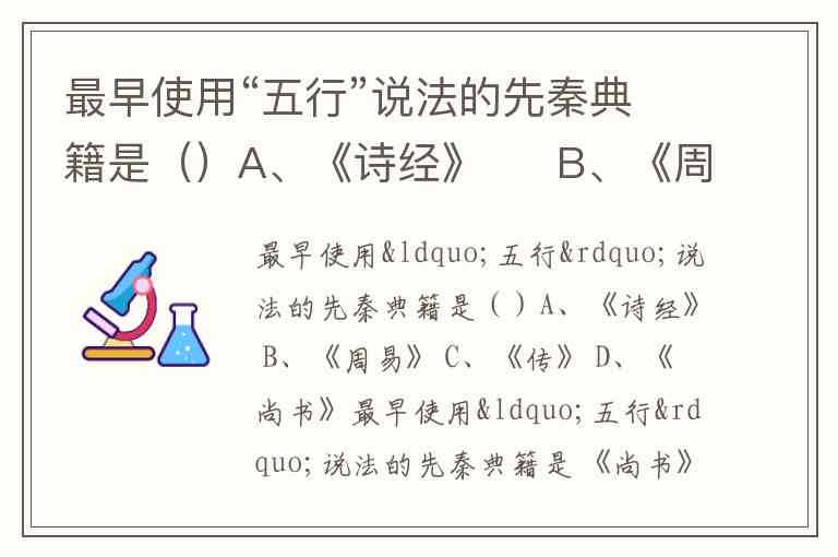 最早使用“五行”说法的先秦典籍是()A、《诗经》 B、《周易》 C、《传》 D、《尚书》