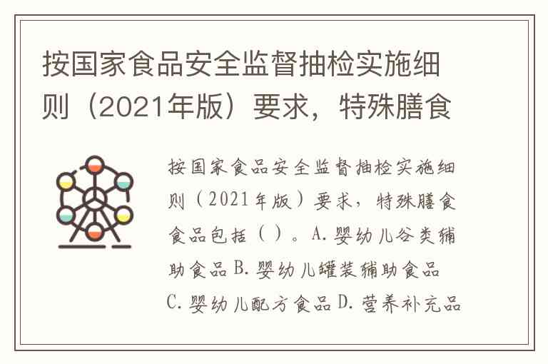 综上,本题正确答案为A.婴幼儿谷类辅助食品、B.婴幼儿罐装辅助食品。这一分类体现了我国对特殊人群(尤其是婴幼儿)食品的精细化监管思路,三类产品均需符合严苛的营养成分和安全指标要求,如2021年版细则特别新增了金黄色葡萄球菌等微生物指标的检测。