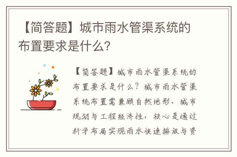 【简答题】城市雨水管渠系统的布置要求是什么?