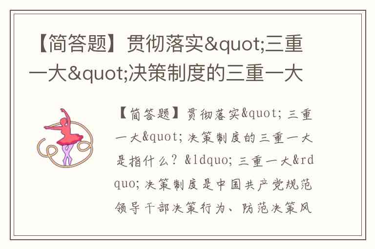 【简答题】贯彻落实"三重一大"决策制度的三重一大是指什么?