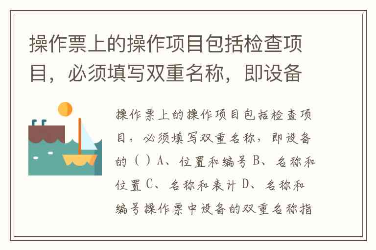 操作票上的操作项目包括检查项目,必须填写双重名称,即设备的()A、位置和编号 B、名称和位置 C、名称和表计 D、名称和编号