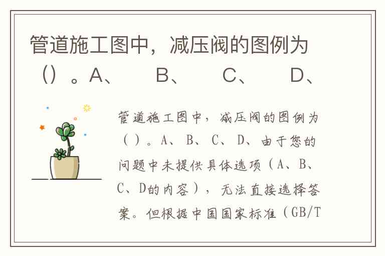 由于您的问题中未提供具体选项(A、B、C、D的内容),无法直接选择答案。但根据中国国家标准(GB/T)及国际通用规范,管道施工中减压阀的图例符号通常包含以下核心元素: